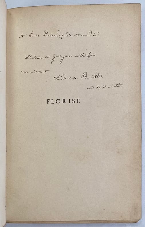 Edition originale de cette pièce en 4 actes, enrichie d’1 envoi autographe de l’auteur au comédien et metteur en scène de théâtre Louis Péricaud. « A Louis Péricaud, poète et comédien. L’auteur de Gringoire mille fois reconnaissant. Théodore de Banville, avec toute amitié. » Péricaud avait joué dans sa pièce « Gringoire ».Reliure frottée et salie. Petites rousseurs sur les gardes.