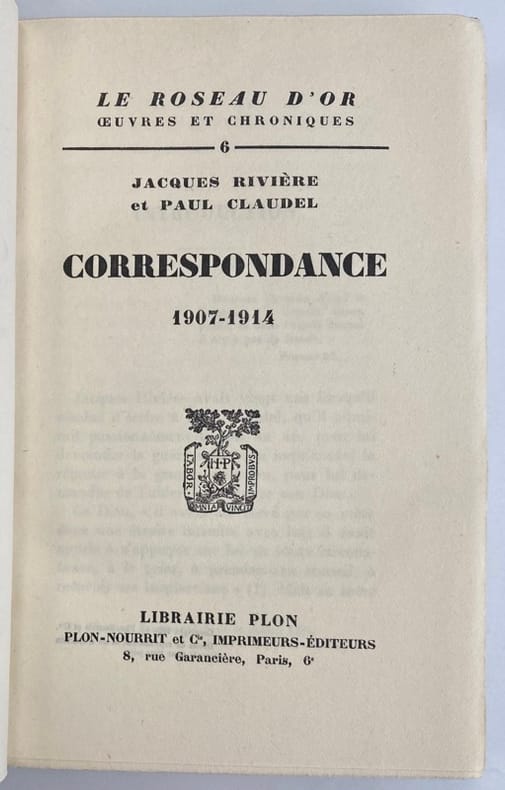 Introduction Isabelle Rivière. La publication des lettres échangées, de 1907 à 1914, entre Claudel et Jacques Rivière sur des sujets divers mais principalement sur les problèmes métaphysiques et accessoirement sur la littérature Une correspondance de haute tenue et de grand intérêt pour comprendre les préoccupations de deux jeunes gens de cette époque qui n'était pas uniquement frivole.