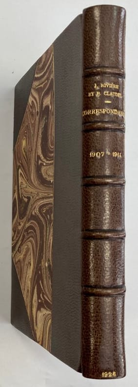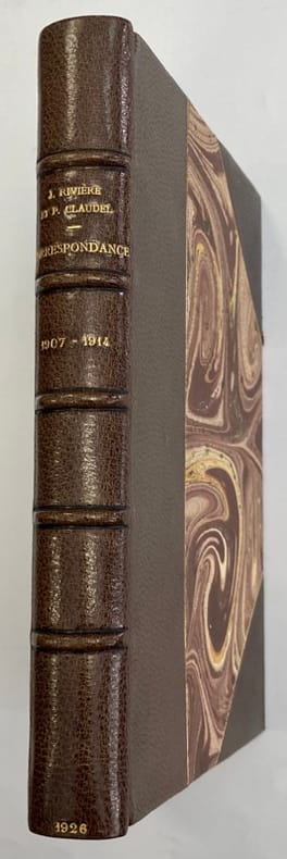Introduction Isabelle Rivière. La publication des lettres échangées, de 1907 à 1914, entre Claudel et Jacques Rivière sur des sujets divers mais principalement sur les problèmes métaphysiques et accessoirement sur la littérature Une correspondance de haute tenue et de grand intérêt pour comprendre les préoccupations de deux jeunes gens de cette époque qui n'était pas uniquement frivole. Exemplaire établi dans une agréable reliure amateur en demi-vélin (plats de couv conservés), dos plat avec pièce de titre, en bon état.