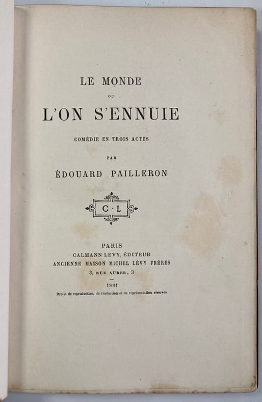 Calmann Levy 2026 2026. Édouard Pailleron: Le monde ou l'on s'ennuie/ Calmann-Levy 1948