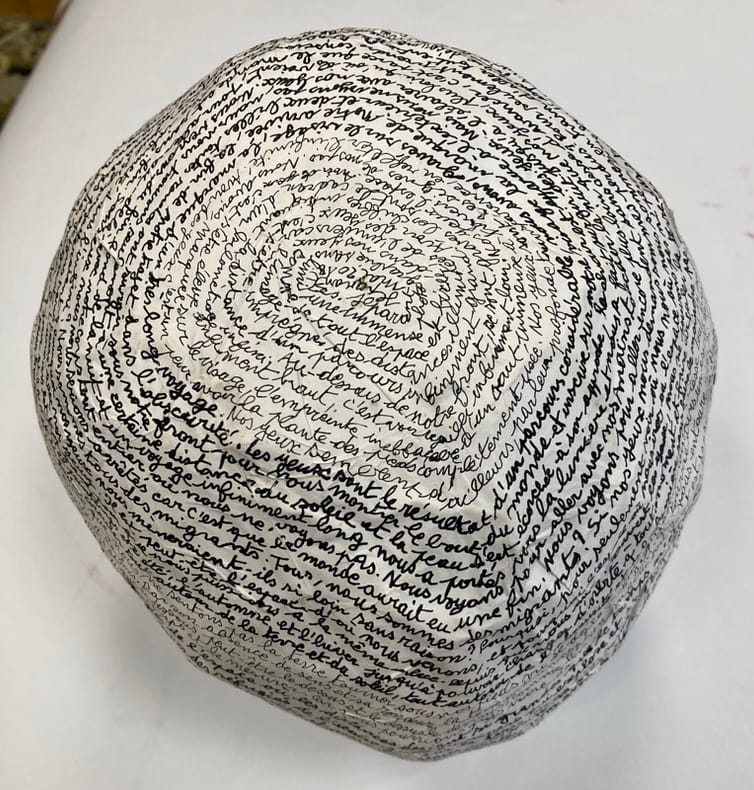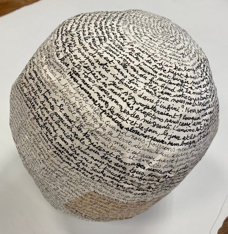 2018 2018. Boule de papier façonné (20 cm de diam. Env.) manuscrite.