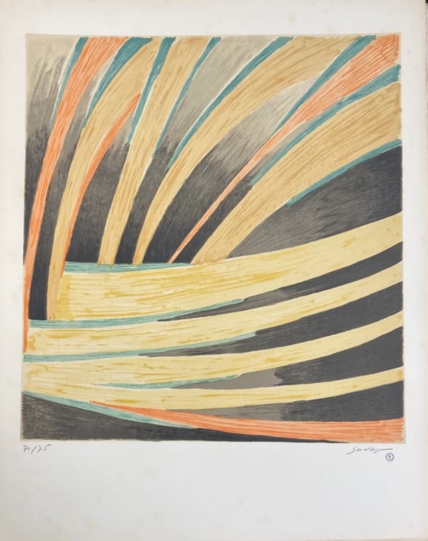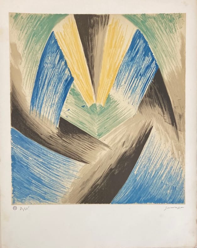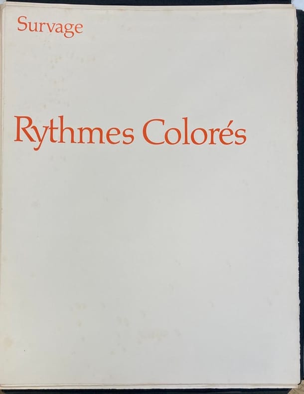 Edition originale de ce texte du peintre et lithographe d’origine russe Survage datant de 1914, imprimé en couleurs, et illustré de 5 lithographies originales en couleurs numérotées (70/75), signées au crayon, contenant le cachet de l’atelier Survage, et celui à froid de Christophe Czwiklitzer.Préfacé par Jean Cassou.Dans son texte, l’artiste détaille sa démarche artistique qui vise à composer une symphonie de formes abstraites et de couleurs par une succession visuelle d’une série d’oeuvres.Page de l’achevé d’imprimé manquante.Rousseurs plus prononcées sur les premiers et derniers feuillets. Portefeuille sali et insolé.
