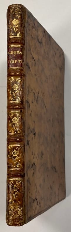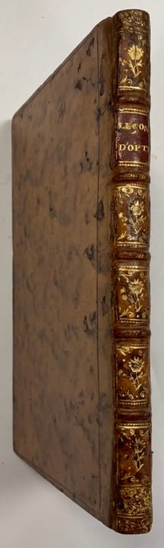 Ce fameux traité, en usage tout au long du XVIII°s. contient des renseignements sur la fabrication des verres correcteurs. Il touche également à la perspective (dont les ombres solaires ou lunaires). Les planches, gravées au trait, sont repliées. - Ex-libris manuscrit sur le faux-titre : "Victor Dugar, 7 aoust 1799". Coiffe supérieure et coins légèrement frottés.
