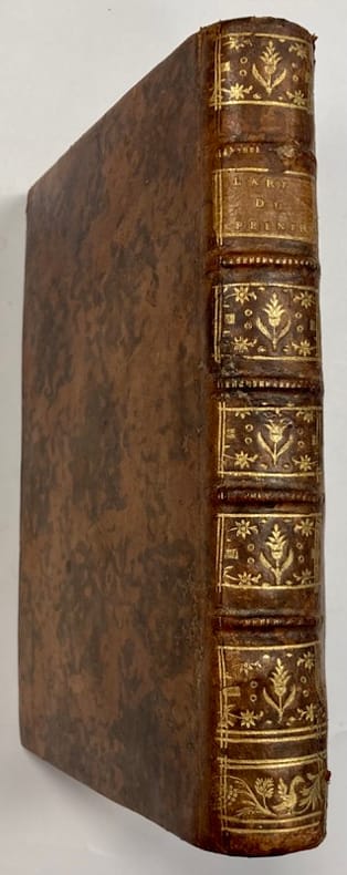 Paris, Grangé, Durand, 1773. 1 vol. in-8°, basane brune marbrée, dos à nerfs orné de caissons dorés, tranches rouges. Reliure de l'époque très usée (mais encore solide), dos épidermé avec manques, coins fortement émoussés. xxxij-360 pp., 4 pp. Rousseurs éparses.[D53]