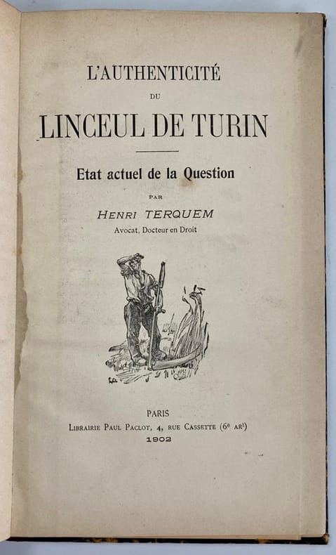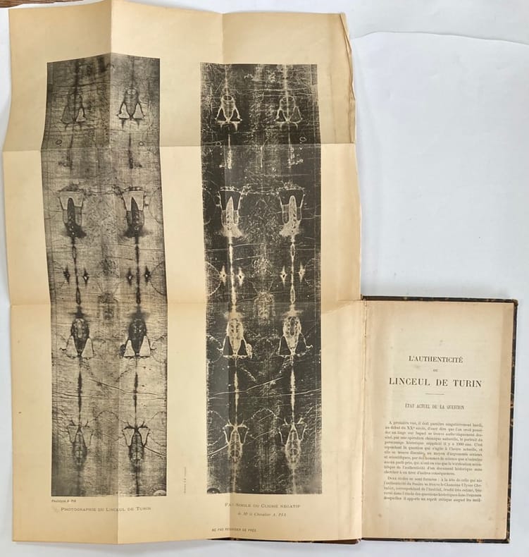 Etude consacrée à la question controversée de l’authenticité du Saint-Suaire de Turin, objet de vifs débats scientifiques et religieux au tournant du XXème siècle, suscités entre autre par les premiers clichés photographiques du linceul qui relancèrent la polémique. Illustrée du phototype et du fac-similé du négatif du linceul. Par une démarche scientifique rigoureuse, Terquem conclue en faveur de son authenticité.Reliure frottée. Déchirure sans manque sur la planche dépliante.