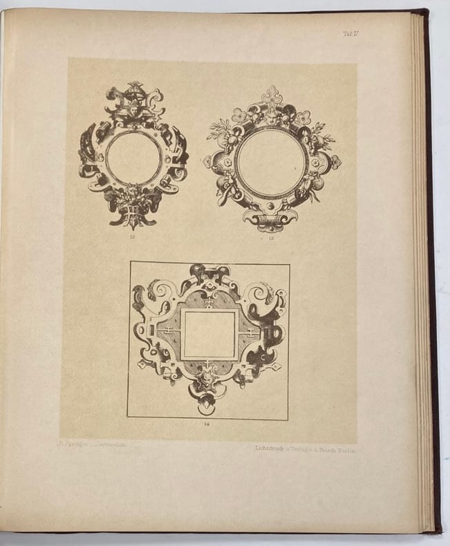 1879 Berlin. Ernst Wasmuth. 1879. 1 volume grand in-4, demi-chagrin noir, dos lisse ornée de l’inscription dorée en long: Cartouche. (4) ff. et 33 planches montés sur onglets.