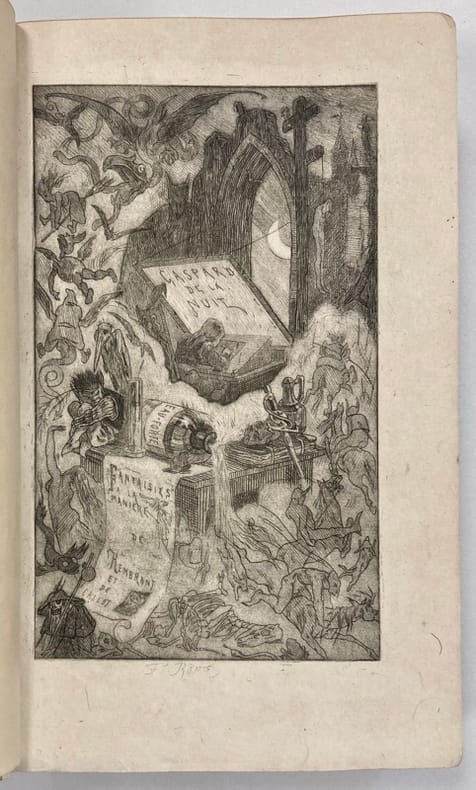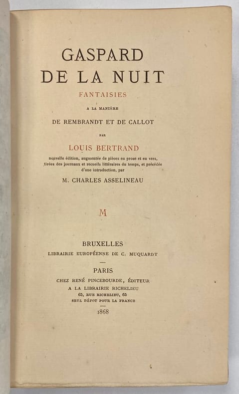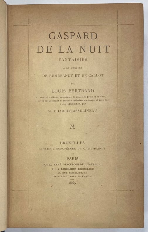 La plupart des poèmes d'Aloysius (Louis) Bertrand (1807-1841), considéré comme l'inventeur du poème en prose, avait d'abord paru dans le journal "Le Provincial" de Dijon, ville où il passa la plus grande partie de sa vie dont les rues, monuments, habitants, inspirèrent son oeuvre.