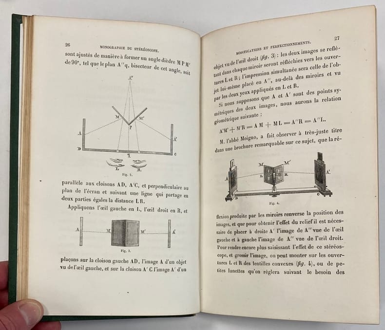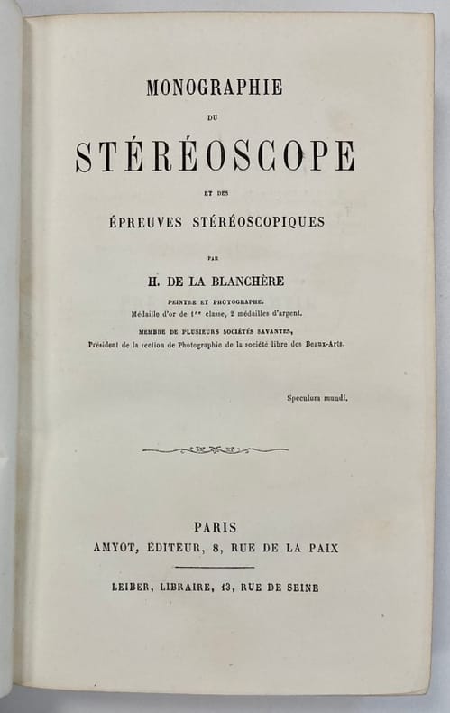 Edition originale de ce traité de photographie, à la fois ouvrage scientifique et manuel technique, qui fut l’un des tout premiers consacré au stéréoscope et à la vision en 3 dimensions.Illustré de nombreuses figures in-texte, dont certaines à pleine page, il se consacre autant à la théorie, qu’aux appareils optiques, aux procédés photographiques et à leurs applications scientifiques et pratiques.