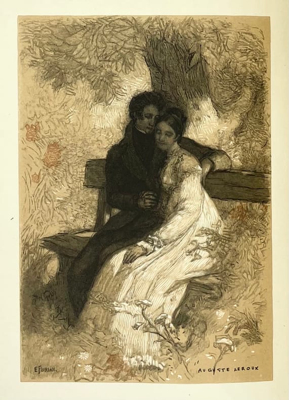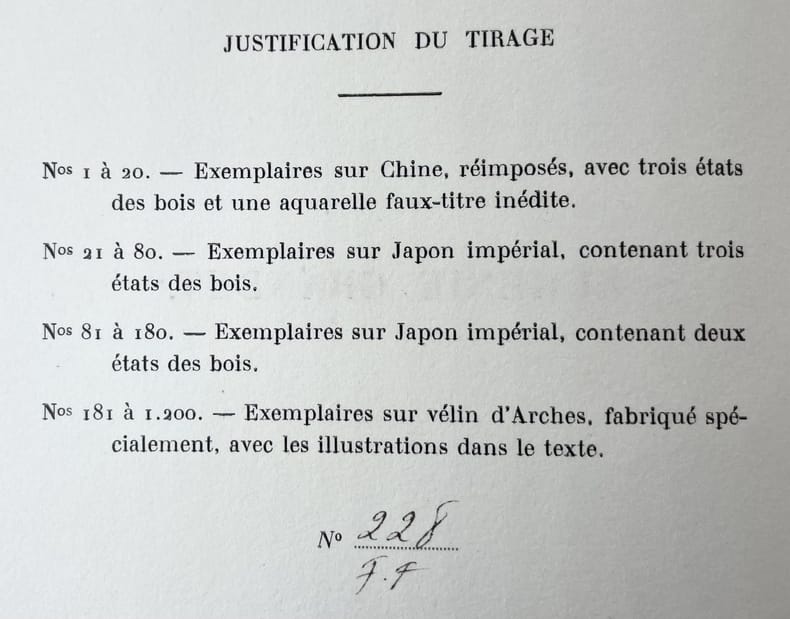 Édition pour bibliophiles, imprimée avec soin et ornée de 26 bois gravés en couleurs d’après Auguste Leroux.Un des 1 020 exemplaires tires sur vélin d’Arches spécialement fabriquée pour l’édition.Jolie reliure de Louis Guétant en dépit de petits accrocs aux gouttières en tête.