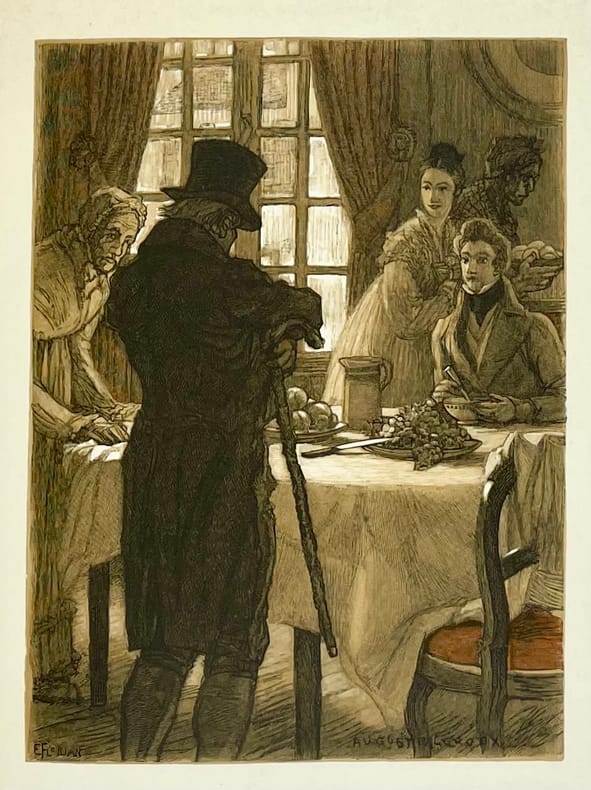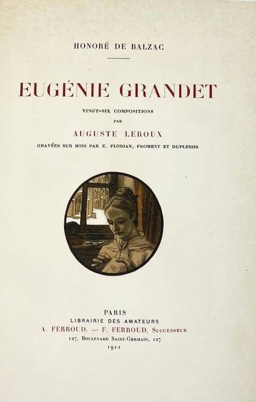 Edition originale de l’un des plus grands romans de Balzac et l’une des œuvres majeures de la littérature européenne. Elle forme le Tome V sur les 12 des Etudes de mœurs au XIXè siècle. « Cette série de 12 volumes des ‘Etudes de mœurs’ est fort rare aujourd’hui ; elle se rencontre parfois à l’état broché, elle est rarissime en belle reliure du temps. C’est l’édition originale de Eugénie Grandet qui en fait la valeur. C’est pour cette raison qu’on collectionne ce volume séparément portant sur le titre : Tome I (des Scènes de la vie de Province) et Tome V (des Etudes de mœurs). Eugénie Grandet est le premier grand livre de Balzac, quelques-uns disent son chef-d’œuvre. L’œuvre resplendit d’une force d’art incomparable : le personnage d’Eugénie et celui de son père sont justement considérés parmi les plus heureux de tous les portraits dus à la plume de ce créateur de génie. Le style se montre, ici, mobile, pénétrant et beaucoup moins minutieux et lourd que dans bien d’autres œuvres du même romancier : pas de longues digressions morales qui, si elles confèrent à certaines de ses œuvres un réel intérêt, en gâtent souvent la pureté de lignes. Dans ce roman, Balzac décrit le destin d’une jeune femme au XIXè siècle confrontée à l’avarice d’un père et à la tristesse provinciale. Dans l’épilogue (p. 382), qui disparaîtra par la suite, Balzac écrit : « chaque département a son Grandet » et dans l’introduction : « Si tout arrive à Paris, tout passe en province : là, ni relief, ni saillie ; mais là des drames dans le silence ; là, des mystères habilement dissimulés ; là, des dénouements dans un seul mot ; là, d’énormes valeurs prêtées par le calcul et l’analyse aux actions les plus indifférentes. On y vit en public » (p. 21). Magnifique exemplaire, l’un des rarissimes à toutes marges, avec ses couvertures d’origine conservées, d’une exceptionnelle grandeur de marges (hauteur : 223 mm), enrichi du portrait de Balzac.