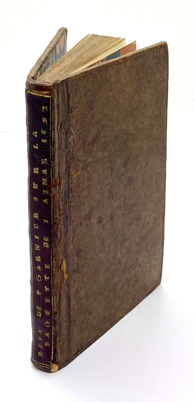 Lyon, Jean-Baptiste de Ville, 1692 ; in-12 de 108 – [3] pp., reliure de l’époque veau moucheté, dos lisse couvert d’une pièce de maroquin bordeaux avec titre doré en long, tranches dorées sur mouchetures rouges.