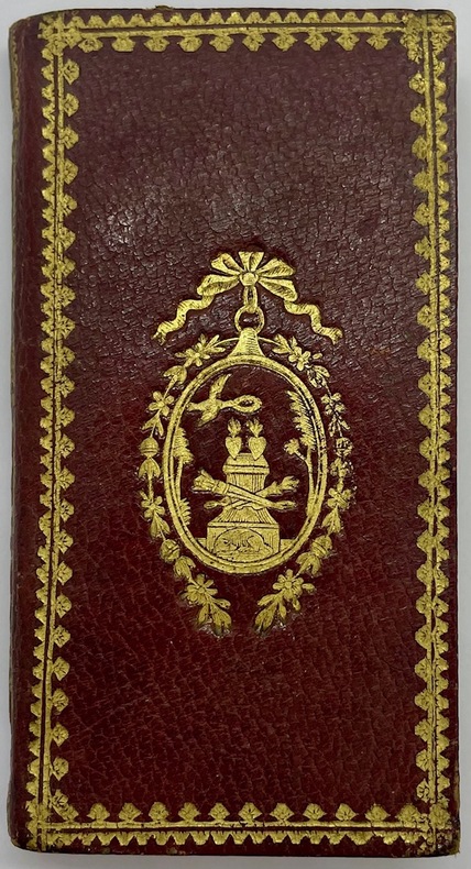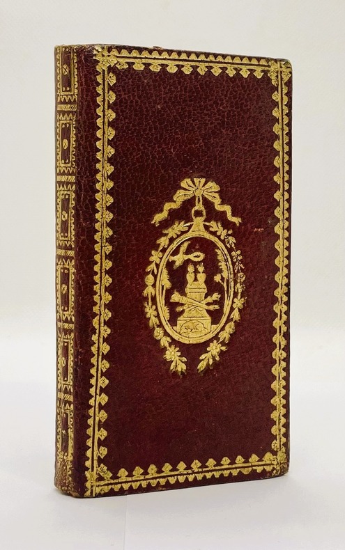 Paris, Veuve Hérissant. - Claude-Jacques-Charles - Nicolas Crapart. - D’Houry 1783, 120x60mm, 130 + 50 + 70 pages non numérotées. Reliure maroquin bordeau. Pièce de titre verte sur le haut du dos à 5 nerfs. Entre nerfs fleurons dorés. Encandrement a triple filets dorés sur les deux plats. Tranches dorées. Très bel exemplaire.