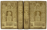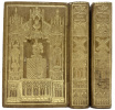 Paris D. Joaquin Maria de Ferrer, Imp. by Julio Didot Mayor 1832 Un bel exemplaire de cette édition miniature. Reliure cathédrale contemporaine en cuir marron signée Simier of Paris, avec une abondante décoration dorée et un écusson armorié sur les plats. Motifs, titres et moulin à vent dorés au dos. Cette reliure est identique à une partie de la collection de reliures signées de la British Library Charles Ramsden. (Voir la cote BL c150k11) Les reliures sont un peu frottées, avec une légère perte de dorure, mais dans l'ensemble, elles sont en excellent état. Les charnières ont été restaurées professionnellement à un moment donné, d'une manière à peine perceptible. Papiers de fin marbrés. Illustré de 11 planches gravées par E Stalker (dont le frontis) et d'une carte dépliante coloriée à la main. Complet. Demi-titre à chaque volume, et un titre gravé sur papier glacé, et un second titre gravé. Le volume 1 comporte un portrait de Cervantes en frontispice (portrait de Cervantes gravé par E. Stalker d'après le dessin de José del Castillo) et 5 planches gravées. Il se termine par une magnifique carte miniature coloriée à la main, montrant les voyages de Don Quichotte. Le volume 2 présente 5 planches gravées. A l'intérieur, les livres sont en très bon état, mais avec un léger assombrissement et une rousseur modérée sur les pages. Il s'agit néanmoins d'un très bel exemplaire. Il s'agit de la deuxième édition de Don Quijote par Ferrer. La première était en un seul volume, cette édition permettait un meilleur interlignage et deux planches supplémentaires. Cette luxueuse reliure ajoute beaucoup à l'attrait de l'ouvrage, qui avait été publié à l'origine dans des enveloppes de papier. Nb. De nombreuses sources citent STAKKER comme graveur, mais un examen attentif des gravures montre qu'il s'agit d'E. Stalker. Christie's a indiqué lors d'une vente récente que Ferrer était un grand admirateur de Cervantès et qu'il a payé 30 000 francs pour produire la première édition en miniature qui comprend sa dédicace à Cervantès après la page de titre. Collation : XX, 352, [ii], carte, XII, 378 pages. 125 x 80 mm (5 x 3Œ inches). Palau, 25059 ; Rius, 89 ; Suñé, 96 ; Manuel du collectionneur de Quixotes, no. 41.1 .