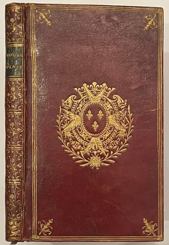 Paris, Veuve Duchesne, 1776 ; in-12 de [1 f.], xix pp., pp. 7 à 80, 2 grandes planches dépliantes, reliure de l’époque maroquin vieux rougefilets en encadrement sur les plats, fleurons aux angles, armes au centre, dos lisse orné, pièce verte, tranches dorées.