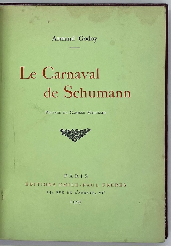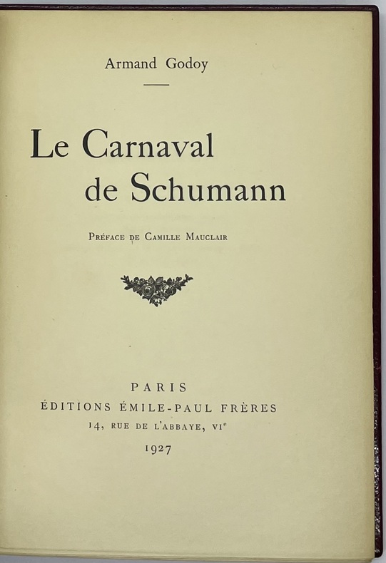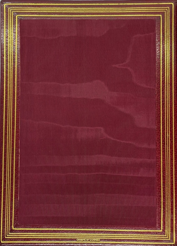 Paris, Émile-Paul frères, 1927 ; in-8, de [4] ff., xxviii-96 pp., [1] f., reliure de l'époque maroquin janséniste vieux rouge, dos à nerfs, filets intérieurs dorés, doublures et gardes de moire bordeaux, tranches dorées sur témoins, couverture et dos (Canape et Corriez).