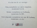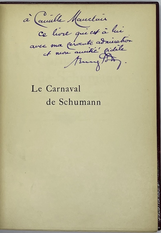 Édition originale de ce recueil de poèmes et de chants préfacé par Camille Mauclair. Exceptionnel exemplaire, un des 5 imprimés sur Japon impérial, justifié B. Il est accompagné d'une dédicace très amicale de l'auteur au préfacier : « A Camille Mauclair, ce livre qui est à lui, avec ma fervente admiration et mon amitié fidèle ».Bel exemplaire relié par Canape en 1928. Talvart et Place, VII, 196