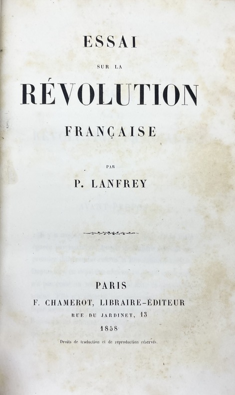 Édition originale. Le républicain Pierre Lanfrey est né à Chambéry en 1828. - Reliure modeste. Rousseurs.