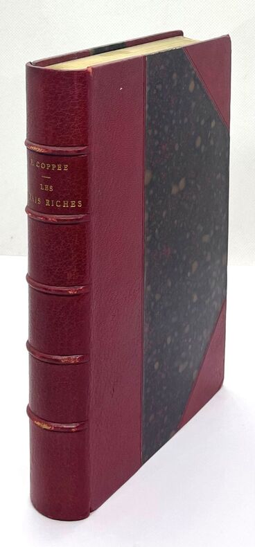 Édition originale. Décidément, c'est un éternel problème : à partir de quel revenu est-on un vrai riche ? Coppée ne l'a jamais résolu. « Ce ne fut pas son moindre charme que d'être demeuré naturellement fraternel aux petites gens, participant de leur naïveté sensible, de leur générosité spontanée, malgré l'acuité d'une intelligence ironique très fine et très avisée. Mais, écrivain connaissant toutes les ressources du métier, virtuose poétique autant que poète de sentiment et d'esprit, il pouvait toucher ces deux publics ordinairement ennemis : l'élite et la masse. » (Talvart et Place, III, p. 242). Ouvrage joliment illustré de compositions sur bois de Gambard et Marold. Envoi autographe de l'auteur « à Eugénie Doche, bibliophile, fidèle souvenir de son vieil ami ».Bel exemplaire, sur papier d’édition (il y a eu 25 Chine et 25 Japon). Talvart et Place, Bibliographie des auteurs de langue française, II, 248.