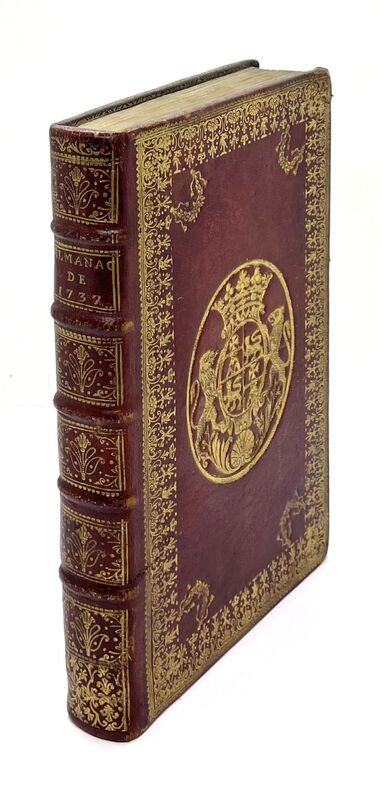 Exemplaire aux armes de Jean-François Joly de Fleury (1718-1802), intendant de Bourgogne et conseiller d'État qui succéda à Necker comme contrôleur général des finances en 1781. Il vendra quelques années plus tard son hôtel particulier à l'éditeur d'Houry qui y installera ses presses. Calendrier interfolié.- Légère usure aux angles. O. H. R., pl. 1955, fer n°1.