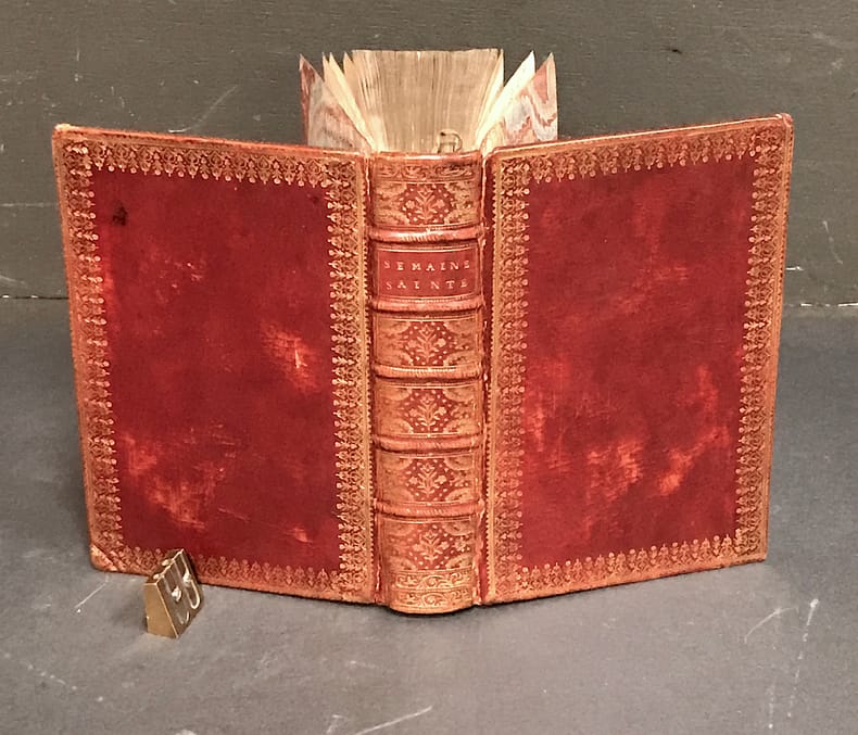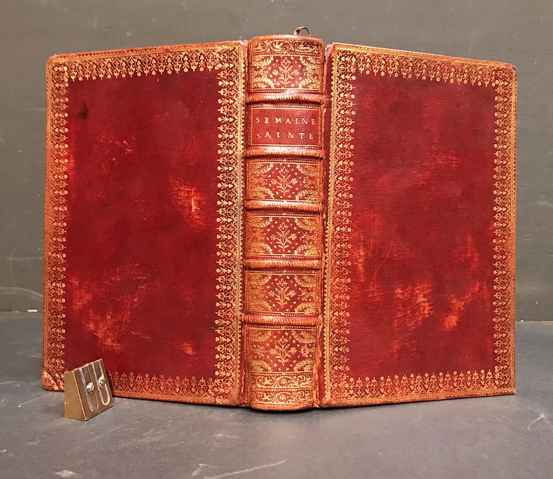 Paris, Hansy, 1732. in-8, 2ff.-16pp.724pp.-1f.- 3 hors-texte. Maroquin rouge, large encadrement d'une fine dentelle dorée, dos orné de caissons filets dorés, fleurs, feuillage et petits fers dorés, tranches dorées. (Reliure de l'époque).