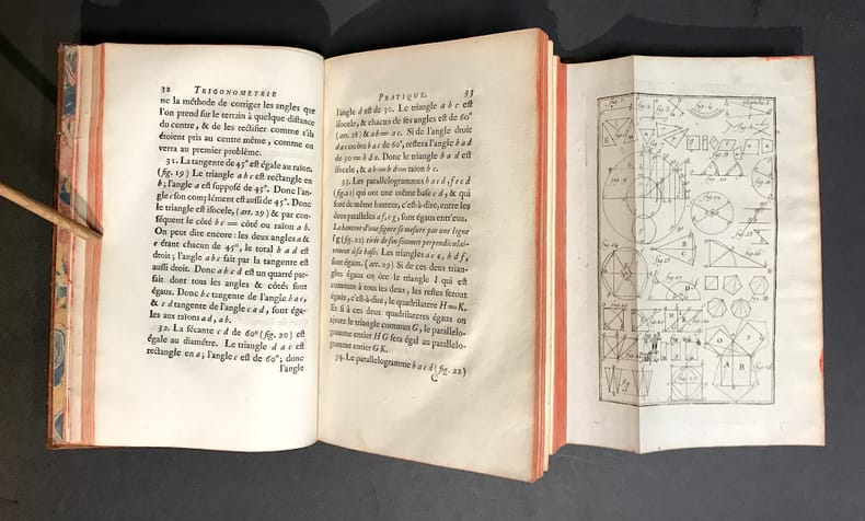 à Paris, chez H. L. Guerin & L. F. Delatour, M. DCC. LIV. 1754 In-8 20 x 12 cm. Reliure de l’époque veau havane marbré, dos à nerfs encadrés de fers dorés, pièce de titre maroquin grenat, 132-XC pp., vignette de Sébastien Leclerc gravée par Cochin, tables, 6 planches repliées contenant 89 figures in fine.