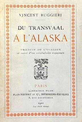 Librairie Plon, Nourrit et Cie, Paris, 1901, traduit de l'Italien et suivi d'un vocabulaire Esquimau, préface de Vincenzo FAGO, broché, 292pp. bon état, 190x120 . (p3)