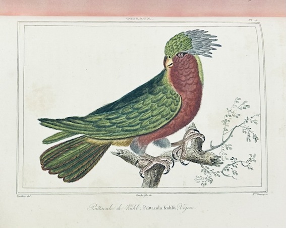 Paris, Pourrat frères, 1839. 2 volumes in-8 (220x150), plein veau raciné époque, dos lisse orné avec pièces de titre, auteur et tomaison, frises aux plats et aux coupes, , 2ff.-510pp.-1f. , 2ff.-547pp.-2ff. , illustré d’un frontispice et de 41 planches dont 19 en couleurs d’époque représentant des animaux, des poissons et des oiseaux, un cahier (tome 2) dérelié, 1 planche volante, petits frottements, 1 coin usé, quelques rousseurs .