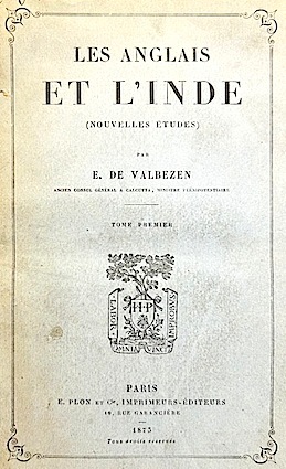 Insurrection des Cipayes du Bengale en 1857, jusqu’à la répression de l’armée anglaise. Ouvrage orné de 3 plans hors-texte et d'une carte en couleurs repliés. Bon exemplaire.