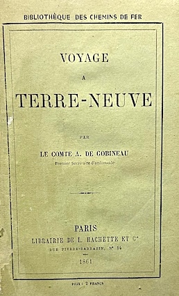 2 ff.n.ch., 309 pp., un f.n.ch. de table. Sabin, 27620. Clouzot, p. 133. Édition originale, rare. En attente d'une affectation diplomatique après sa mission en Perse terminée en 1858, Arthur de Gobineau fut envoyé en mars 1860 à Terre-Neuve comme chargé de mission afin de délimiter, en concertation avec deux commissaires britanniques, les zones des pêcheries de morue respectivement réservées aux pêcheurs français et anglais. De ce voyage de six mois, qui conduit Gobineau à Saint-Pierre, Sydney (sur l'île du Cap-Breton, où il visite la forteresse de Louisbourg), Truro et Halifax en Nouvelle-Écosse, puis tout autour de Terre-Neuve avant de se fixer à Saint-Jean, il tirera un remarquable récit, notre Voyage à Terre-Neuve et également une nouvelle, La Chasse au caribou. Il semble également que sa mission ait été conduite avec succès et au bénéfice des pêcheurs français : une petite baie de Terre-Neuve porte le nom d' "Anse de Gobineau"