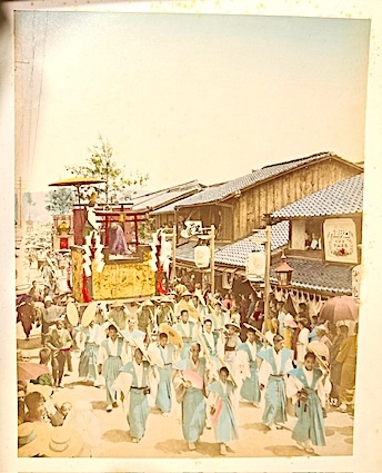 Vues et scènes de la vie quotidienne, portrait de geishas et autres artisans au travail, de Nagasaki,Yokohama, Tokyo, Kamakura et Tokaido. Très joli album de 46 photos albuminées, coloriées. Bel exemplaire.
