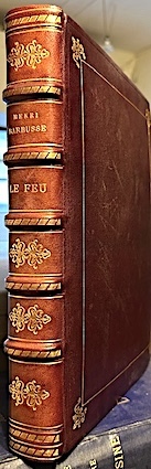 Edition en partie originale et première édition illustrée réalisée en 1918 par l'éditeur d'art Gaston Boutitie, place de la Madeleine à Paris (Carteret IV, p. 59 - Monod I, n° 981 - Talvart et Place I, p. 239). Un des 200 exemplaires numérotés sur papier de Rives à la forme (n°163). Edition illustrée de 86 compositions originales de Raymond Renefer dont 10 eaux-fortes originales. L'artiste Raymond Renefer réalisa 86 croquis qui seront gravés par Eugène Dété, et dix eaux-fortes originales hors-texte, gravées directement depuis le front. "Un des meilleurs récits de guerre 1914-18. Henri Barbusse avait connu lui-même le feu des tranchées dès 1915, d'abord comme soldat puis comme brancardier". Joint à notre exemplaire : une carte postale franchise servant pour la correspondance des Armées de la République, provenant de Henri Barbusse sur le front, adréssée à Mr Pierre Halary à Paris. "Emouvante lettre du front, datée de février 1915". Bel exemplaire.