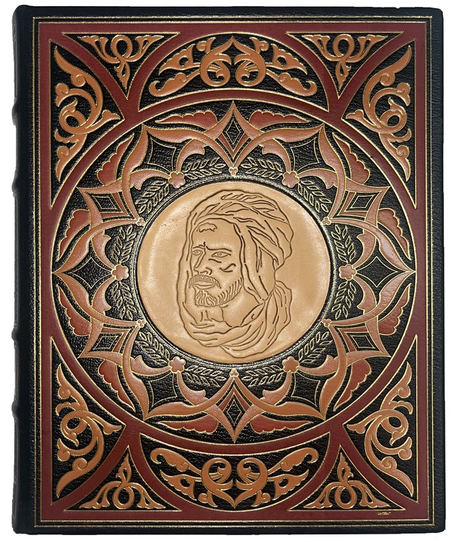 Paris, H. Piazza & Cie- Les Heures Claires, [2008]. In-4 de 225 pp., (3) ff. ; mouton mohair croisé pleine peau, décor d’arabesques en couleurs sur les plats, médaillon de cuir beige orné d’un visage ciselé au centre du premier, dos à nerfs orné, tête dorée, non rogné, étui (reliure d'art du centre à Limoges).