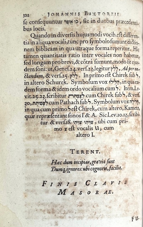 Edition originale de ce traité sur la « massore » (ponctuation de la Bible hébraïque) du à Johann Buxtorf, l'un des plus importants hébraïsants chrétiens de son temps et contribua largement à transformer les études hébraïques. Johann Buxtorf (1564-1629) fut professeur d'hébreu à Bâle pendant 39 ans. Il contribua largement à transformer les études hébraïques, d'un passe-temps amateur, en une discipline universitaire reconnue au début du XVIIe siècle. Il est lauteur de plusieurs ouvrages importants sur le judaïsme, dont « Synagoga Judaica ; Das ist, Juden-Schul » (1603), une étude théologique de la religion et un portrait ethnographique des Juifs. Conçu comme un supplément à sa célèbre Biblia Rabbinica, son présent ouvrage traite de l'histoire et de l'évolution de la Massorah (codification des voyelles et de la vocalisation du texte hébreu). L'ouvrage a suscité la controverse car il contredisait la théorie de l'émergence tardive de la Massorah, défendue par l'hébraïste Elia Levita (1469-1549). L'uvre de Buxtorf a été augmentée et développée par son fils, Johannes Buxtorf le Jeune, dans une édition ultérieure imprimée en 1665. Le texte est typographié en latin et en hébreu. Provenance : North Library. (Cachet humide dans le titre et ex-libris gravé);Thomas Coke: ex-libris manuscrit à l'encre en page de garde avec l'inscription en latin: «acheté le livre à William Wells, libraire à Londres, en 1657-8». Bel exemplaire.