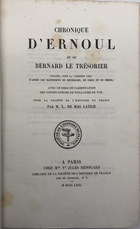 Paris, Renouard, 1871 in-8, XLIV-585 pp., index, demi-veau prune, dos à nerfs orné de caissons à froid (reliure de l'époque). Coiffe supérieure légt frottée.