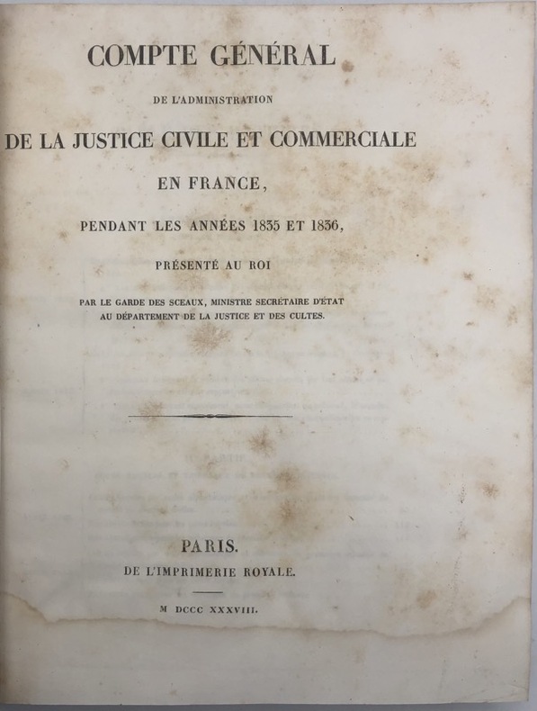 Paris, de l'Imprimerie royale, 1838 in-4, 458 pp., demi-basane, dos lisse, pièce de titre (rel. de l'époque). Large mouillure en bas de page.