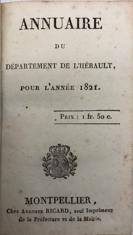 Montpellier, Chez Auguste Ricard, in-16, 282 pp., demi-basane blonde, dos lisse orné de filets dorés et de motifs à froid, pièce de titre (rel. de l'époque). Dos légèrement frottés néanmoins bon exemplaire.