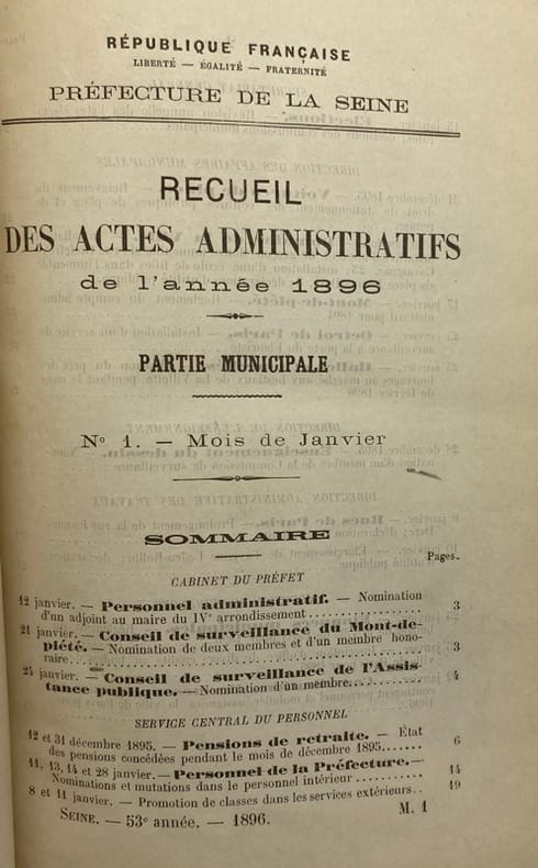 S.l., Imprimerie Municipale, 1897 in-8, 636 pp., demi-basane verte, dos lisse orné de filets dorés (reliure de l'époque). Étiquette au dos. Manque la page de titre. Annotations en marge au crayon rouge.