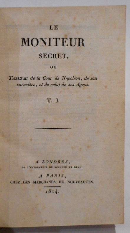 Paris, Chez les marchands de nouveautés, Londres, Imprimerie de Schulze et Dean, 1814 2 tomes en 1 vol. in-8, IV-236 pp. et 232 pp., demi-maroquin vert à long grain à coins, dos lisse, filets dorés, tranches marbrées (reliure de l'époque). Cachet-ex-libris Bibliothèque de Fontmagne.