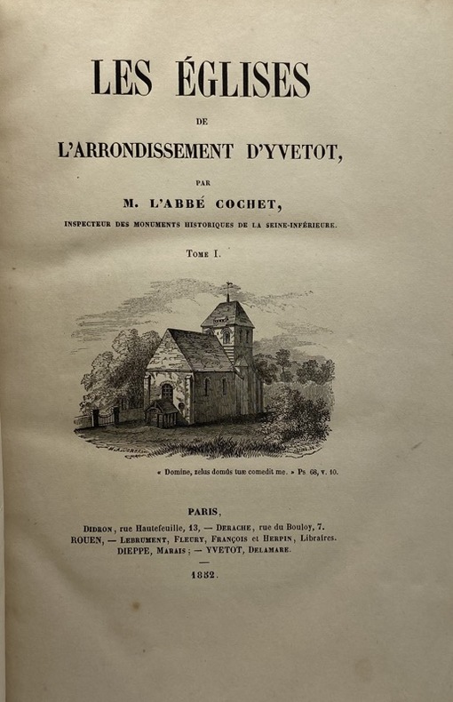 Paris, Didron, Rouen, Lebrument, Fleury, 1852 2 vol. in-8, VII-369 pp. et 430 pp., 8 pp. de liste des souscripteurs, ill. in-t., demi-basane brune, dos à nerfs orné, couverture lithographiée conservée (reliure de l'époque). Qqs rousseurs. Ex-libris portant la devise In labore requies.