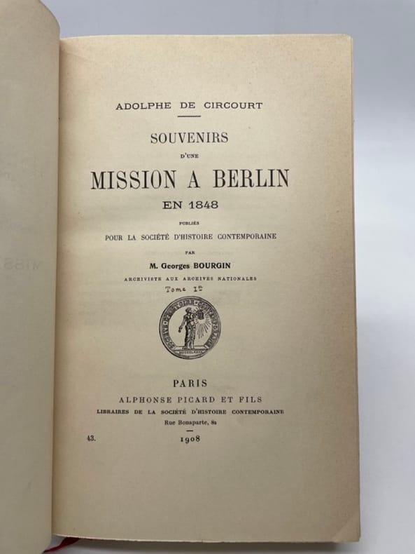 Le 4 mars 1848, Lamartine, alors ministre des affaires étrangères dans le gouvernement provisoire, envoie officieusement le diplomate Adolphe de Circourt (1801-1879) avec lequel il était très lié, en mission à Berlin. - - VENTE PAR CORRESPONDANCE UNIQUEMENT