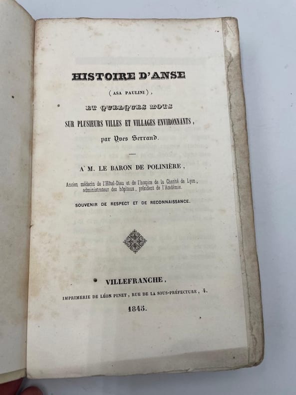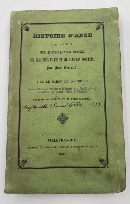 Monographie en deux parties de cette commune du Rhône. La seconde partie contient une notice sur les inondations ayant eut lieu dans cette région et des études sur les villages environnants de Anse (Alix, Ambérieux-d'Azergues, Belmont, Charnay, etc.) - - VENTE PAR CORRESPONDANCE UNIQUEMENT - LIEN DE PAIEMENT, NOUS CONSULTER.