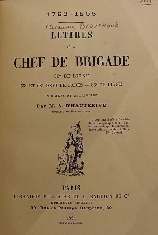 Un frère raconte à son aîné les joies et les misères de sa vie militaitre. Fin de la chouannerie, Armée d'Angleterre, l'Italie en 1805. - - VENTE PAR CORRESPONDANCE UNIQUEMENT