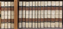 Paris, Longchamps, F. Buisson [puis] F. Buisson, 1812-1814 trois parties en 17 vol. in-8, env. 520 pp. par vol., trois index (un par partie), vélin ivoire, dos à nerfs orné, roulette doré avec un décor de feuillage en encadrement des plats, fer avec un lion tenant une urne au centre des plats, roulette intérieure (reliure de l'époque).