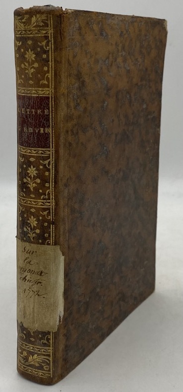 La Haye, chez Le Neutre, et se trouve à Paris, Merlin, 1772 in-8, 239-178 pp., basane fauve marbrée, dos lisse cloisonné et fleuronné, pièce de titre cerise, tranches rouges (reliure de l'époque). Coins supérieurs abîmés. Étiquette manuscrite au dos.