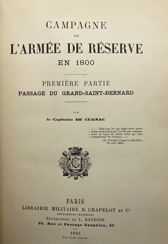 Une des études les plus complète sur la deuxième campagne d'Italie, en deux parties : passage du Grand-Saint-Bernard et Marengo. - - VENTE PAR CORRESPONDANCE UNIQUEMENT