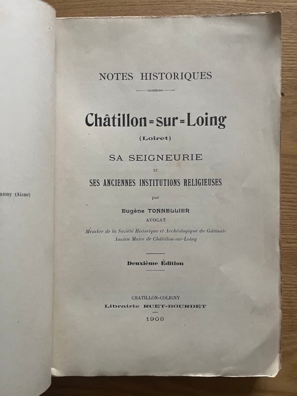 Châtillon-Coligny, Ruet-Bourdet, 1908 in-8, 254-[3] pp., broché.