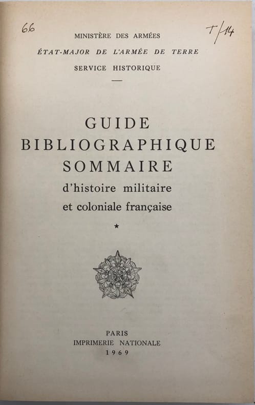 Relié bon état . Contenu propre . 522 pages . 1969. Guide bibliographique sommaire d'histoire militaire et coloniale Française. PHOTOS SUR DEMANDE