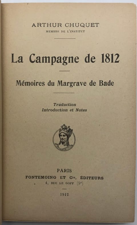 Tulard, 62. « Extraits des mémoires du Margrave de Bade rédigés entre 1851 et 1859. Ne figure dans cette édition que son journal de la campagne de Russie où il conduisait la brigade badoise qui, d’ailleurs, n’alla pas à Moscou ».