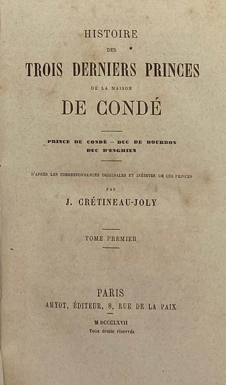 Ouvrage essentiel pour l'histoire des Princes durant la Révolution. Le second tome est exclusivement consacré à la publication de leur correspondance de 1792 à 1816. - - VENTE PAR CORRESPONDANCE UNIQUEMENT