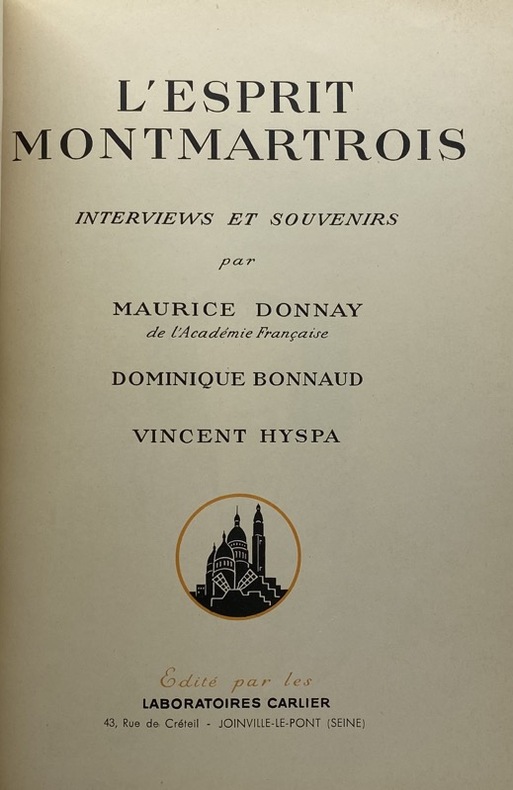 L'ESPRIT MONTMARTROIS. Interviews et souvenirs par Maurice Donnay, Dominique ...